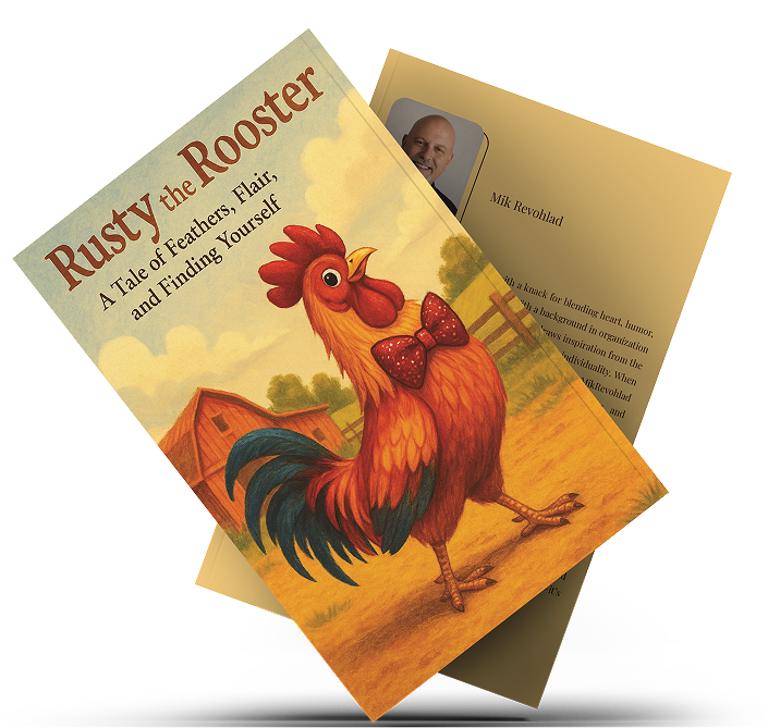 Mik Revohlad is a creative storyteller with a knack for blending heart, humor, and barnyard flair into unforgettable tales. With a background in organization and a love for expressive characters, Mik Revohlad draws inspiration from the courage it takes to be different and the joy of celebrating individuality. When not crafting colorful worlds or cheering for underdog roosters, Mik Revohlad can be found exploring new ideas, organizing chaos with precision, and imagining what life might look like if goats wore tutus. Rusty the Rooster is a tribute to finding your sparkle, and strutting it proudly.