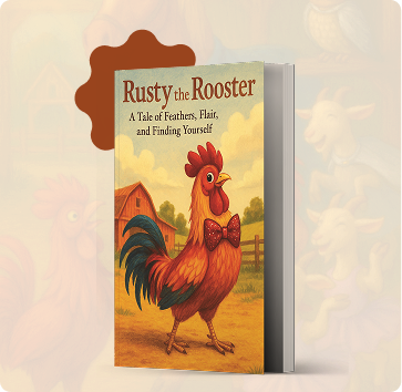 Rusty isn’t your ordinary rooster he’s bright, bold, and full of dreams. While the other barnyard animals stick to the rules, Rusty the rooster dares to stand out. When he discovers a dusty trunk full of glitter, scarves, and a sparkling red bow tie, he finally feels like his true self. But not everyone in the barnyard understands his colorful ways.
